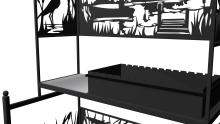 Каркас и все художественные элементы покрашены молотковой краской, имеющую интересную структуру, получаемую при ручной