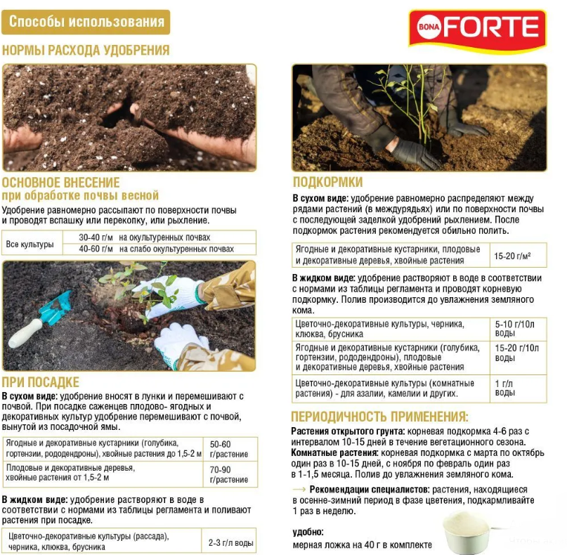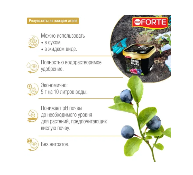 Применяется в открытом грунте для всех видов и сортов голубики, рододендронов, гортензий,
