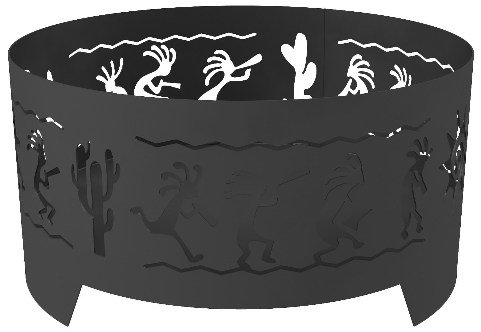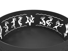 Круглое кострище "Кокопелли" будет отлично смотреться на дачном участке установленное на траву или на подготовленную поверхность.