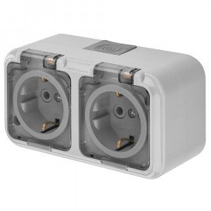 Розетка ОП Bylectrica Пралеска Аква 2-м с/з серый прозрачная крышка IP54 РА16-303 (02)