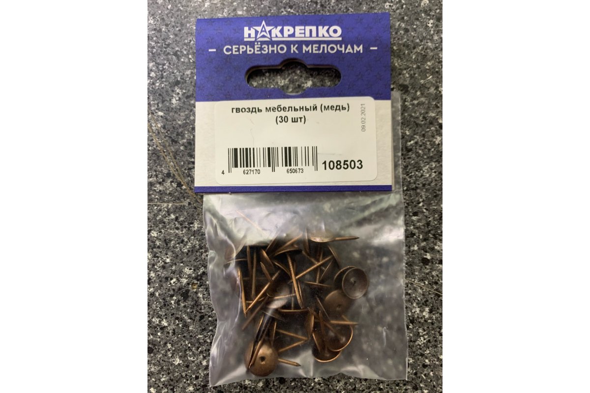 Гвоздь мебельный Медь 30шт BL Накрепко 108503