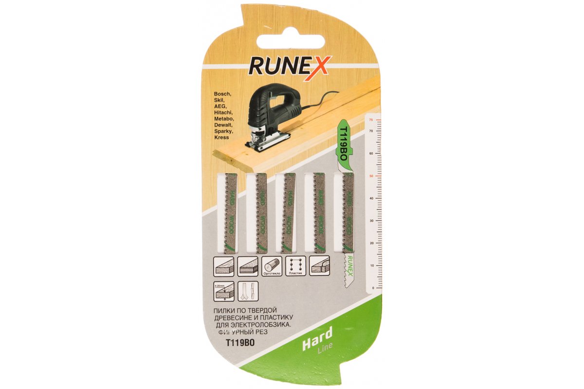 Пилки Runex T119BO 75*50мм 5шт (ДСП,пласт,орг.стекло 4-20мм)