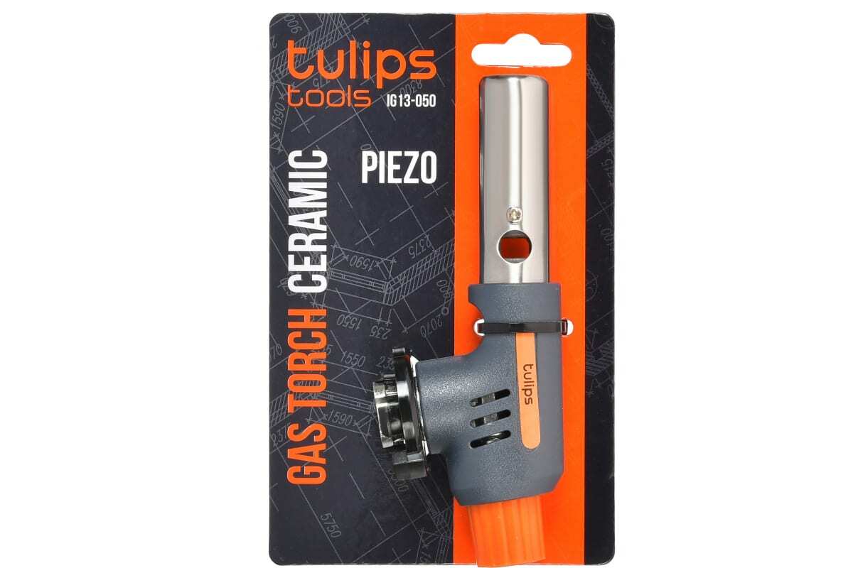 Газовая горелка для цангового баллона Tulips Tools IG13-050 оснащена керамической термоизолирующей вставкой, предотвращающей нагревание сопла, обеспечивая безопасность работы.