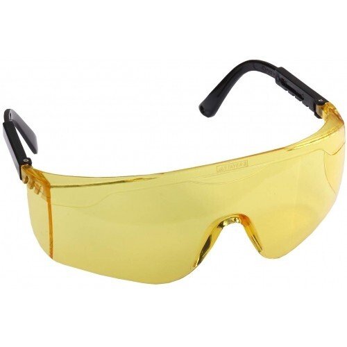 Защитные очки желтого цвета 2-110465 Stayer применяются для защиты глаз от пыли, мелкого мусора, стружки, ультрафиолета. Материал линз - поликарбонат, который отличается высокой прочностью, а также стойкостью к механическим и химическим воздействиям. Дужки у очков регулируются, за счет чего появляется возможность подстроить их индивидуально для каждого пользователя, что гарантирует комфортную работу в защитных очках.