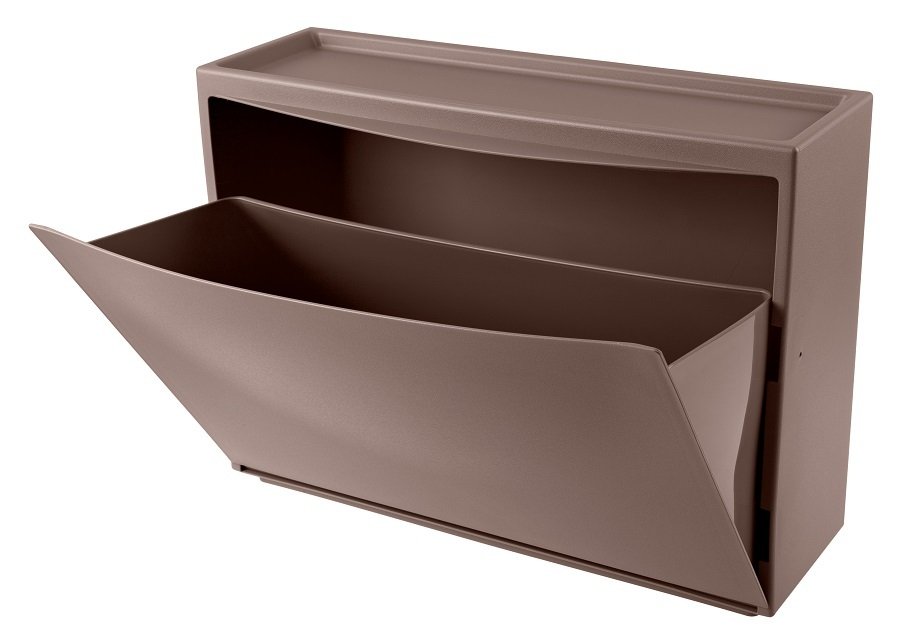 - Передняя крышка снимается и вставляется обратно. Это позволяет промыть при необходимости внутренний ящик, а также это удобно во время крепления обувницы к стене