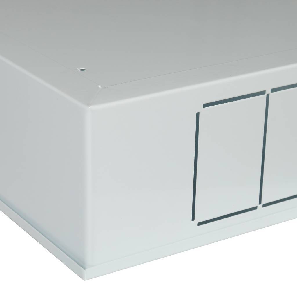Шкаф выполнен из оцинкованной стали, окрашен порошковой краской RAL 9016 с предварительным нанесением фосфатной пленки для придания антикоррозионных свойств изделию. В боковых стенках корпуса шкафа выполнена перфорация, сегменты которой удаляются в любом удобном месте для подсоединения трубопроводов. Шкаф имеет регулировку по высоте до 40 мм за счет выдвижных ножек. Внутри шкафа установлены универсальные профильные крепления, позволяющие располагать оборудование по всей высоте и ширине шкафа. Шкаф оснащен внутренним замком.
