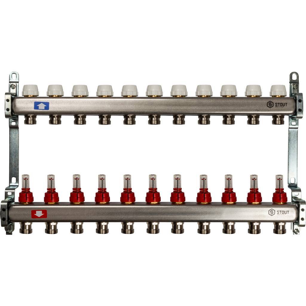 Коллектор из нержавеющей стали с расходомерами STOUT 11 выходов SMS 0917 000011 является прочным и стойким к возникновению коррозии элементом, предназначенным для подключения в системы радиаторного отопления и теплого пола. Изделие распределяет теплоноситель по циркуляционным кольцам, а расходомеры позволяют регулировать и устанавливать подходящую температуру на каждом узле.