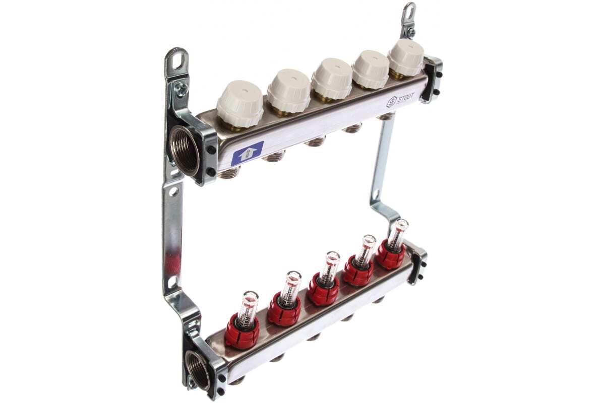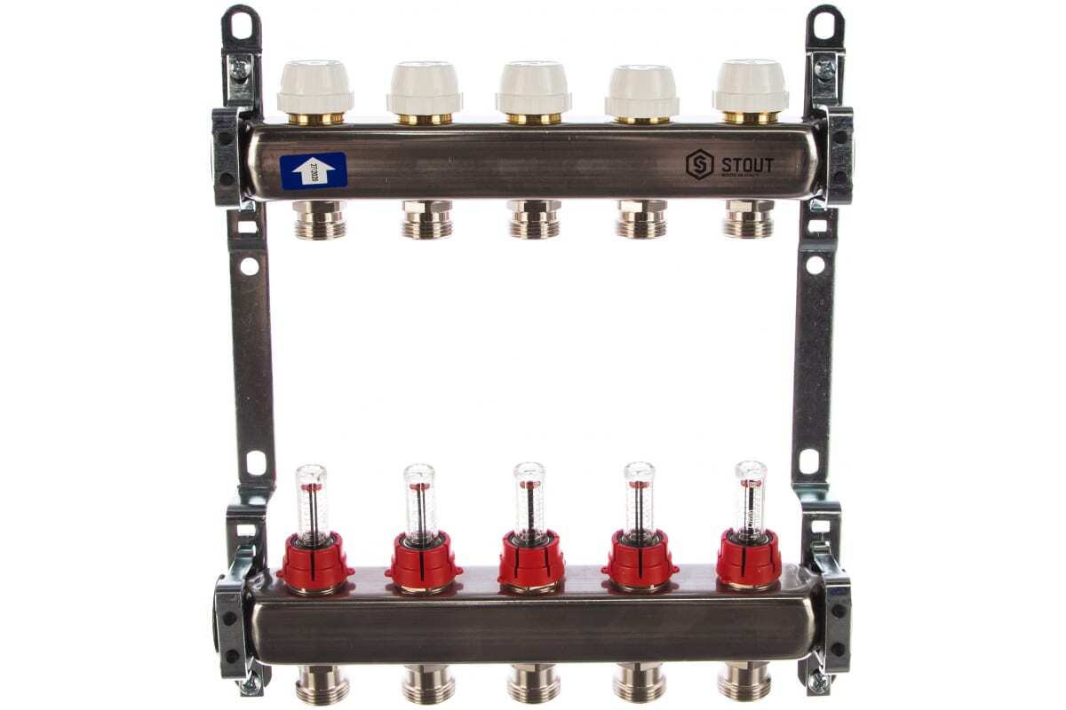 Коллектор из нержавеющей стали с расходомерами 5 вых. STOUT SMS 0917 000005 используется в системах отопления для подачи, распределения и регулировки потока теплоносителя. Данная модель устойчива к коррозии, долговечна и надежна.
