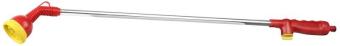 Распылитель 10-ти позиционный GRINDA L-10 8-427484_z01 предназначен для полива и орошения растений на садовом участке и в огороде. Благодаря удлиняющей алюминиевой трубке идеально подходит для полива в труднодоступных местах, а также для направленного полива высоко подвешенных растений. К водопроводному шлангу подключается с помощью соединителя, приобретаемого отдельно. Удобный вентиль на ручке позволяет регулировать интенсивность подачи воды, а также ее полное отключение. Вращая наконечник, можно выбирать нужный режим полива в соответствии с типом растений: жесткая струя, окружность, конус, центр, плоская струя, душ, орошение под углом, аэрирование, слабая струя и вертикальный полив. Особо бережное орошение предназначено для хрупких растений. Эргономичная рукоятка имеет выступы для лучшего захвата и облегчает работу. Приспособление выполнено из качественных материалов, имеет длительный период эксплуатации.