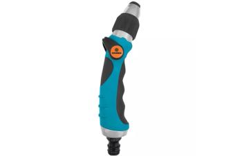 Оснащен плавной регулировкой распыления от сильной струи до мелкодисперсного тумана для эффективного полива участка.