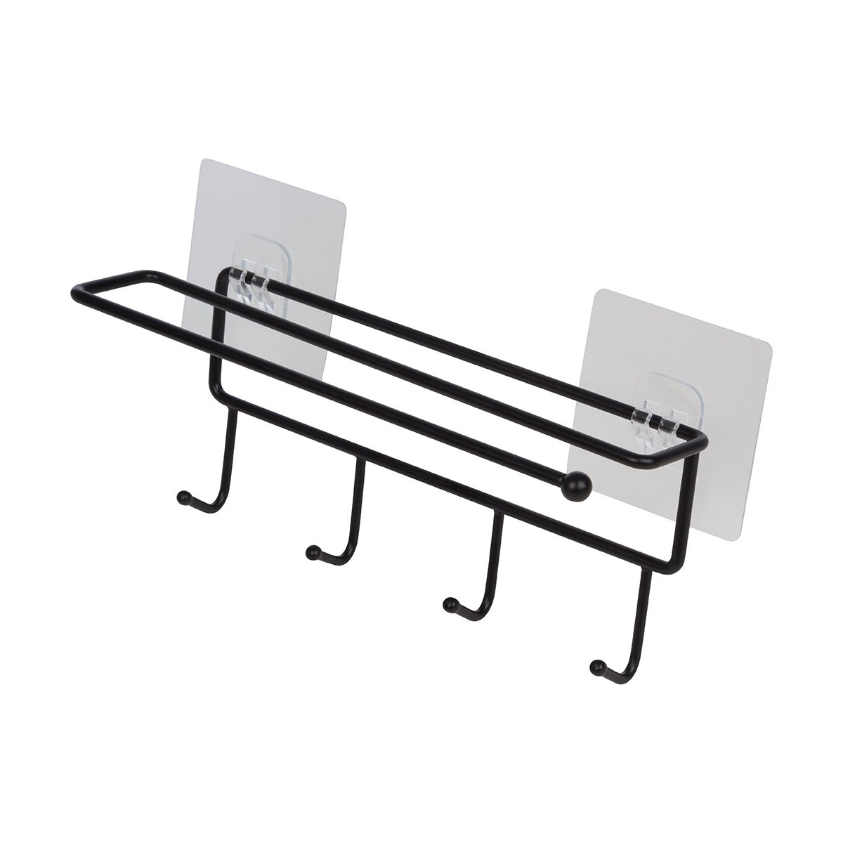 Навесной держатель для кухонных аксессуаров и бумажного полотенца. Крепится к стене с помощью прозрачных самоклеящихся крючков, которые идут в комплекте.