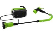 Насос Greenworks является готовым решением, существенно облегчающим Ваш труд. Блок погружного насоса опускается на дно бочки глубиной до 2 м, на бортах бочки крепятся блок с аккумулятором и шланг, через который насос подает воду. К этому шлангу при помощи коннектора присоединяется садовый шланг (в комплект не входит) с пистолетом-распылителем.