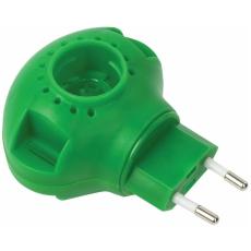 Универсальный электрофумигатор изготовлен из пластика и оснащен индикатором, сообщающим о работе прибора. Устройство состоит из корпуса, вилки для подключения в сеть и нагревателя.