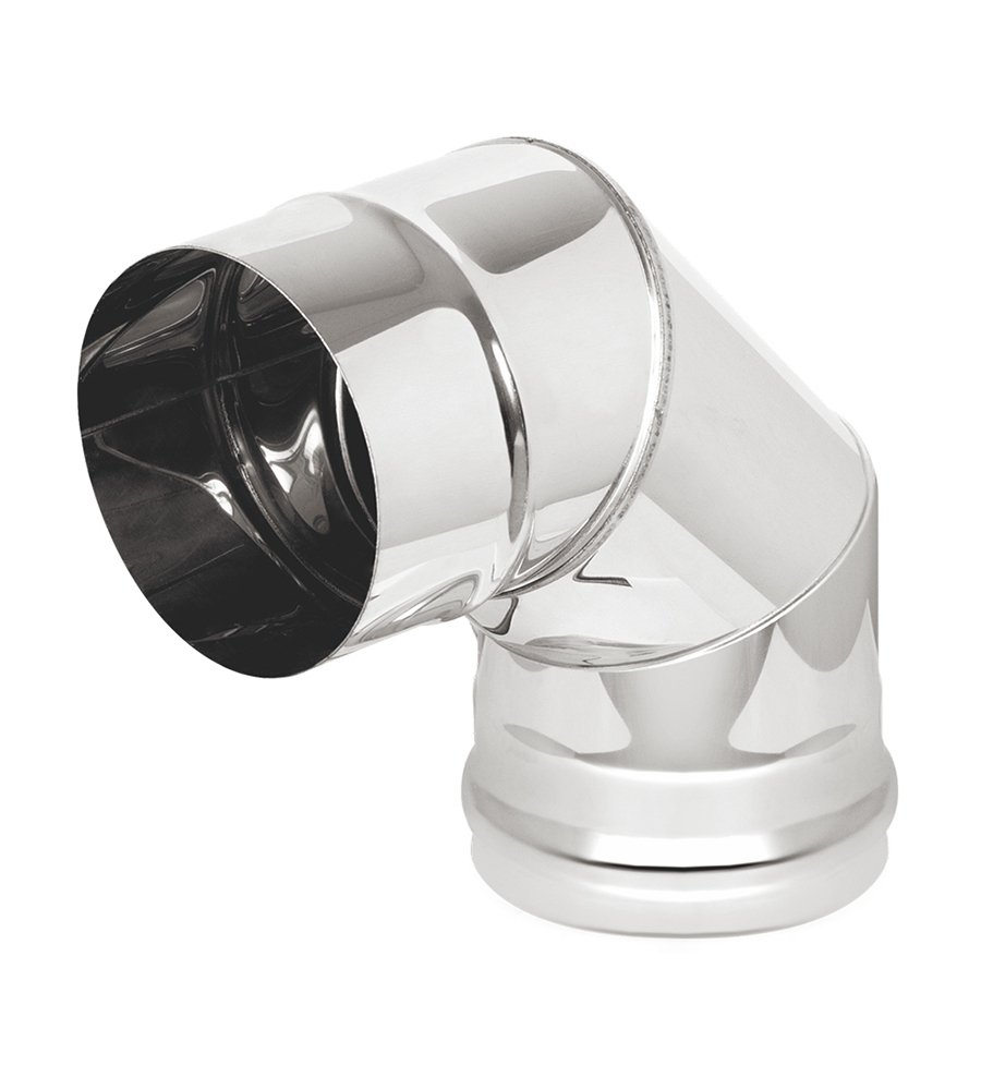 Поворотное колено используется для изменения направления труб дымохода на угол 90 градусов. Изготовлено из нержавеющей стали толщной 0,5 мм.
