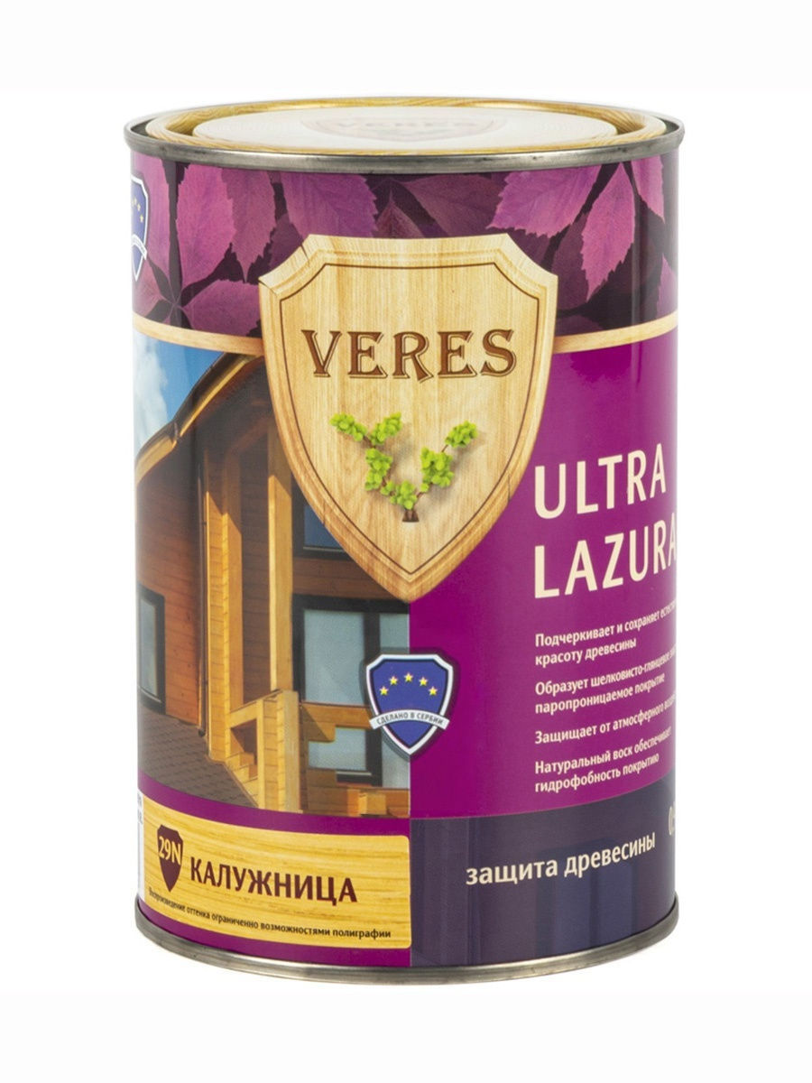 Высокоэффективная тиксотропная шелковисто-глянцевая декоративно-защитная лессирующая пропитка для древесины УЛЬТРА ЛАЗУРА "VERES".Надежная защита от УФ излучения и атмосферных влиянийТиксотропная - не капает с кисти и не образует подтековУдобна в нанесенииНатуральные масла и воски в составе обеспечивают гидрофобность и пониженное грязеудержаниеСрок эксплуатации покрытия до 10 лет "в системе отделки с грунтовочным составом Veres Base"Метод нанесения: кистью, валиком, методом распыления или окунанием.