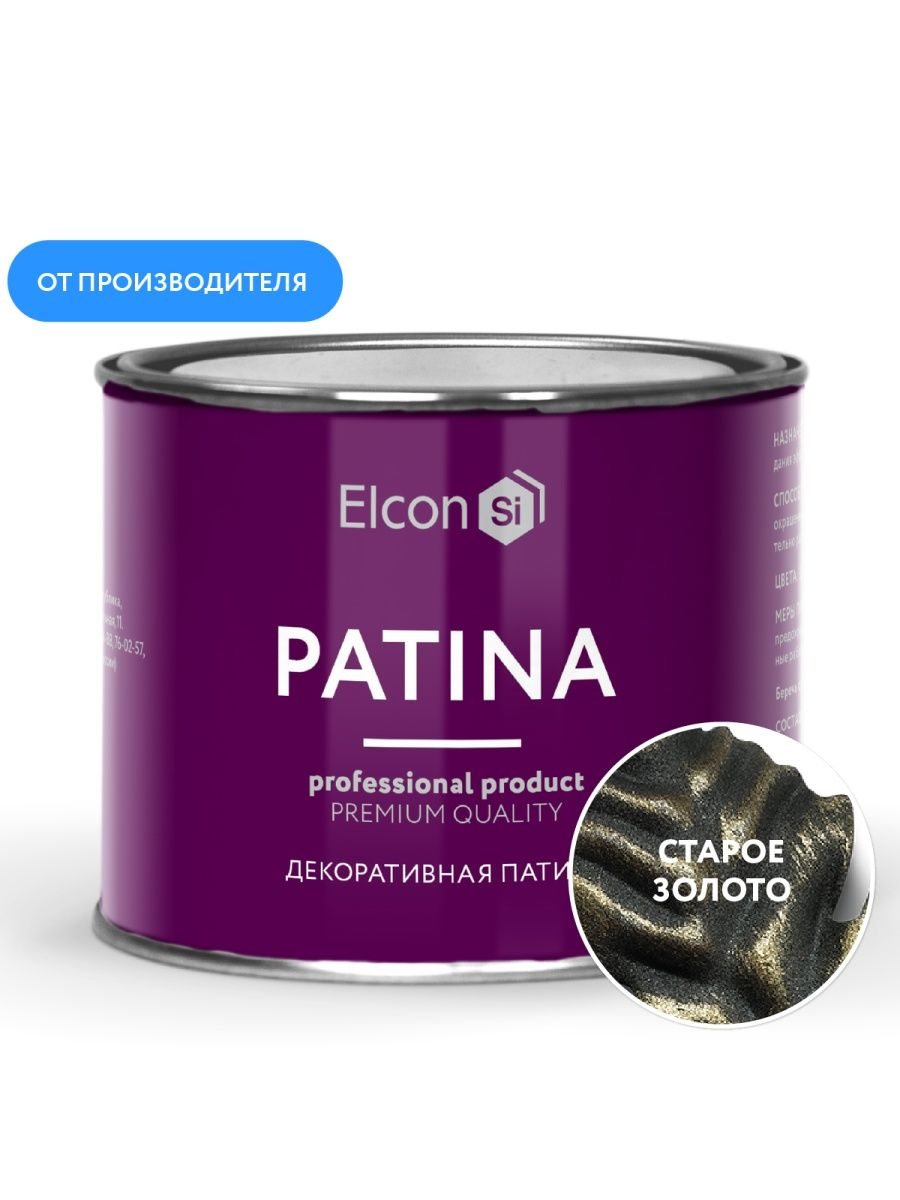 Декоративная патина Elcon Patina предназначена для художественной и декоративной отделки под благородную старину металлических кованых, штампованных изделий, в том числе литья из чугуна, цветных металлов, стали, железа различных форм и размеров, дверей, фигурных оград, ворот и памятников, эксплуатируемых в атмосферных условиях и при перепадах температур от минус 60 до плюс 150 градусов. Декоративная патина Elcon Patina обладает стойкостью к атмосферным воздействиям, высокой коррозионной стойкостью и насыщенностью цвета. Время высыхания на отлип составляет 30 минут при температуре плюс 20 градусов. Указания к применению 1. Перед применением тщательно перемешать, при необходимости разбавить растворителем Elcon R до 10 процентов от общей массы. 2. Патина наносится на сухую поверхность с помощью плоской жесткой кисти. На бумагу поместить небольшое количество патины, смоченной в растворителе кистью растереть патину. 3. Пройтись кистью по выпуклым местам металлического изделия. Если необходим более насыщенный эффект, то растирка на бумаге должна быть менее интенсивной. Работы рекомендуется проводить участками, площадь которых составляет от 0,7 до 1,5 м2. Широкие редкие мазки образуют более спокойную фактуру, а частые и мелкие создают более декоративную и эффектную. Время окончательной сушки при температуре плюс 20 градусов составляет 24 часа. Срок окончательной полимеризации покрытия при температуре плюс 20 градусов составляет 72 часа. Декоративная патина Elcon Patina применяется для окрашивания кованых изделий, садовой мебели, ворот, заборов, дверей, светильников, скамеек.