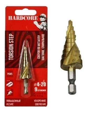 Сверло по металлу шаговое Hardcore 142420 предназначено для получения отверстий различного диаметра без перестановки режущего инструмента.