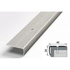 Алюминиевый профиль ПУ-06.Внешний угол (накладка на ступень), 40 х 20 мм. C двумя зонами рифления против скольжения и округленной торцевой стороной. С монтажными отверстиями.
