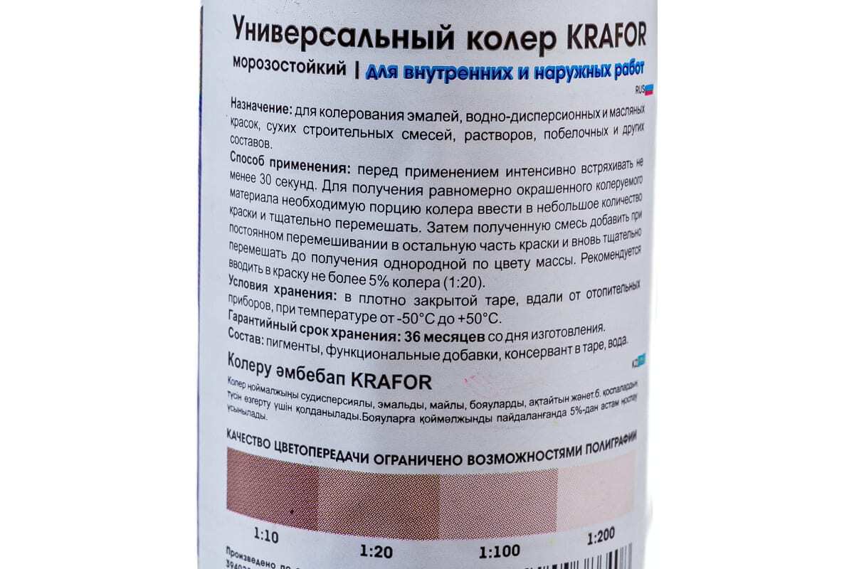 Колер предназначен для колеровки эмалей, водно-дисперсионных и масляных красок, сухих строительных смесей , растворов, побелочных и других составов.