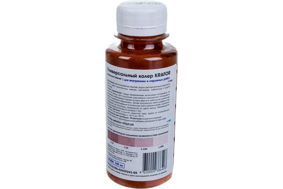 | Расход (л/м2) | В зависимости от типа колеруемого материала и насыщенности желаемого тона, ориентировочно 100мл колера на 1л краски |