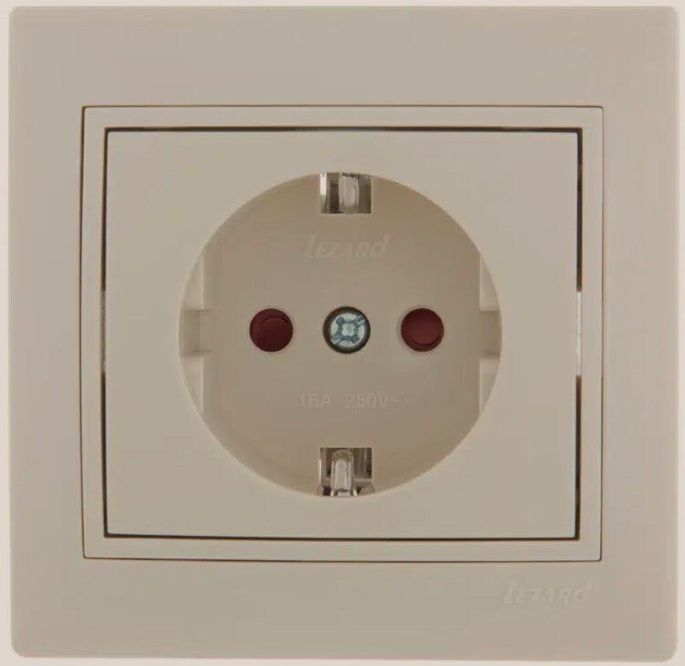 Розетка СП Lezard Мира 1-м с заземлением с защ.шторками кремовый 701-0303-124