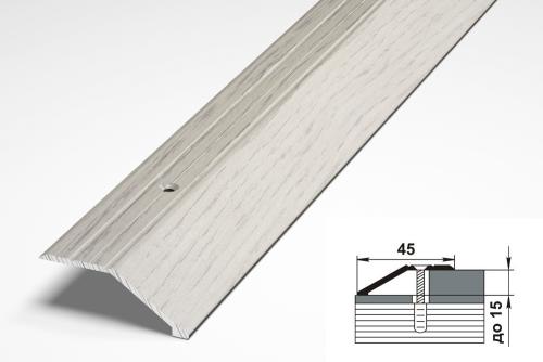 Данная модель предназначена для скрытия стыков разных по толщине и находящихся на разных уровнях напольных покрытий. Пороги с отверстиями для монтажа поставляются с саморезами (d 3,0 мм х 25,0 мм) и дюбелями. Все пороги поставляются в индивидуальной упаковке.