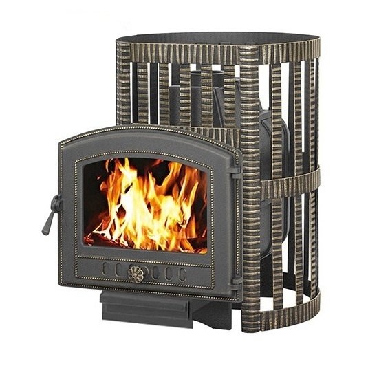 Банная чугунная печь Легенда Ковка 22 (224) укомплектована чугунной герметичной дверцей Везувий 224 с жаропрочным стеклом «Schott Robax». Конвекционно-вентилируемый кожух "Ковка" изготовлен из металлической текстурированной полосы покрашенной термостойкой краской и покрытая патиной «Бронза».