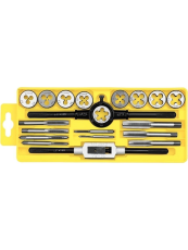 Набор резьбонарезной STAYER 28012-H20, предназначен для нарезания внутренней и внешней метрической резьбы, не требующей чистовой доводки на металлических изделиях и восстановления ее поврежденных участков. Использование качественных материалов и современного оборудования гарантирует высокий рабочий ресурс и удобство при нарезании резьбы.Характеристики Stayer 28012-H20:Количество метчиков в наборе, шт: 9Количество плашек в наборе, шт: 9Комплектация: метчики и плашкиМатериал метчиков: легированная стальМатериал плашек: легированная стальМетрическая резьба: М3-М12Резьба 1/4 BSP: нетРезьба 1/8 BSP: нетРезьба трубная (G/BSPT): нетТип отверстия: глухое и сквозноеКоличество предметов в наборе, шт: 20.