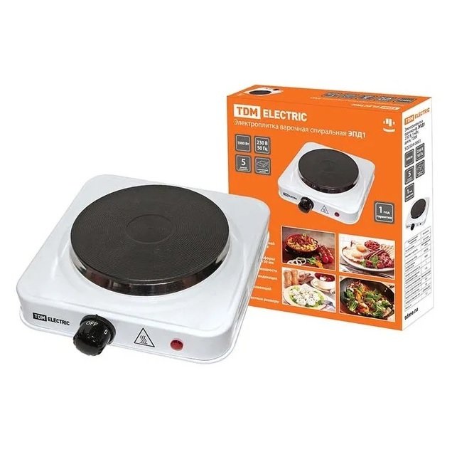 Плитка электрическая 1конфорка 1кВт блин чугун белая TDM SQ2504-0003
