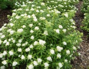 Один из немногочисленных сортов летнецветущих спирей с белыми цветами. Карликовый лиственный кустарник , достигает до 0,8 м в высоту и до 1,5 м в диаметре. Медленно растущий сорт, ежегодный прирост 5-10 см.