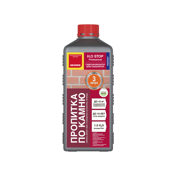 NEOMID H2О STOP придает водо- и грязеотталкивающие свойства впитывающим воду пористым строительным материалам, таким как: облицовочный и силикатный кирпич, искусственный и природный отделочный камень (известняк, песчаник), тротуарная плитка, бетон, газобетон, пенобетон, гипс, гипсокартон и т п. Используется в цементно-песчаных смесях, при производстве бетонов, штукатурок, цементно-песчаных стяжек тротуарной плитки и отделочного камня с целью придания водоотталкивающих свойств, повышения морозостойкости и долговечности.