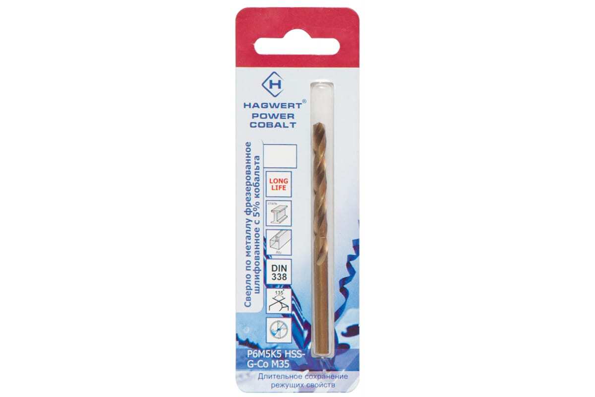Сверло по металлу Power-Cobalt Hagwert применяется для получения сквозных и глухих отверстий в металлических заготовках. Изготовлено из высококачественной быстрорежущей стали, легированной кобальтом Р6М5К5/М35 (6 % вольфрама, 5% молибдена, 5% кобальта). Сверло предназначено для работ повышенной сложности.