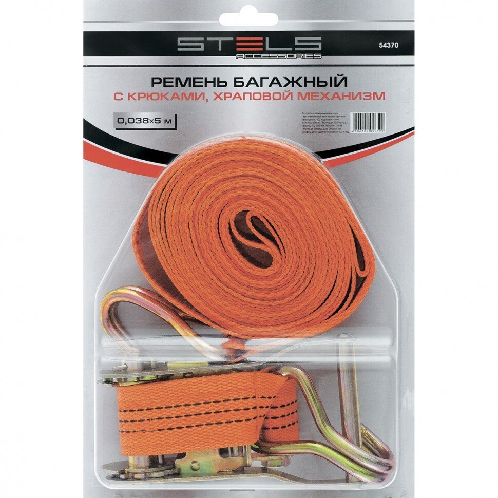 Ремень багажный с крюками 8м 50мм 2т храповый механизм Stels 54386
