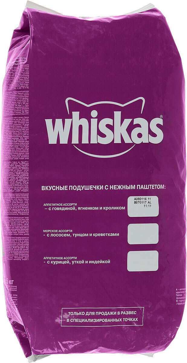 Корм Вискас (Whiskas) в ассортименте 1кг