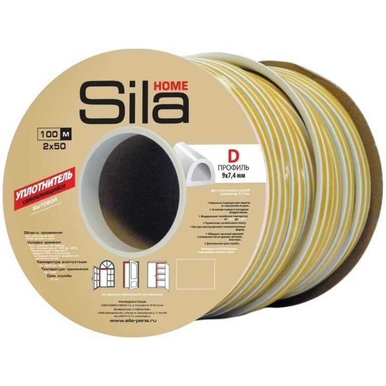 Самоклеящийся уплотнитель SILA изготовлен в Польше из качественной мелкопористой EPDM резины с клеящим армированным слоем и характеризуется очень высокой адгезией к дереву, металлу и пластику.