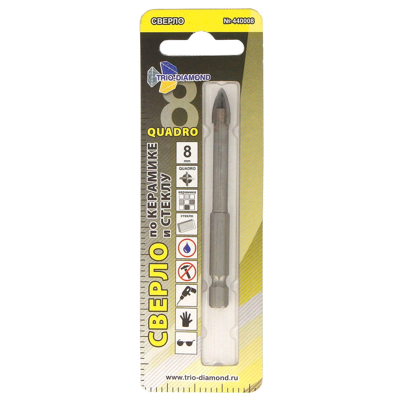 Сверло по керамике и стеклу квадро 8мм Trio-Diamond