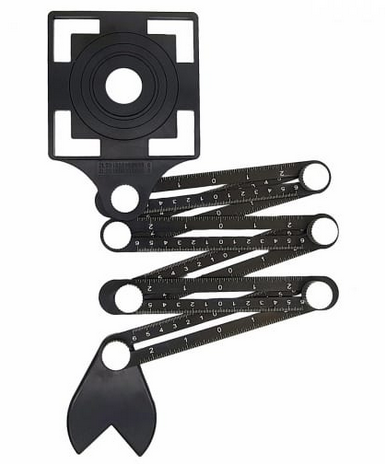 Оснащен трафаретом для высверливания отверстий диаметром 25, 40, 45, 55 мм. Линейки изготовлены из алюминия. Угловой фиксатор позволяет более точно зафиксировать шаблон.