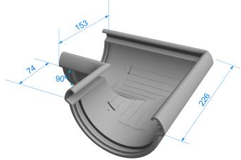 Угловые элементы устанавливаются как на внешних, так и на внутренних углах кровли и предназначены для соединения желобов.