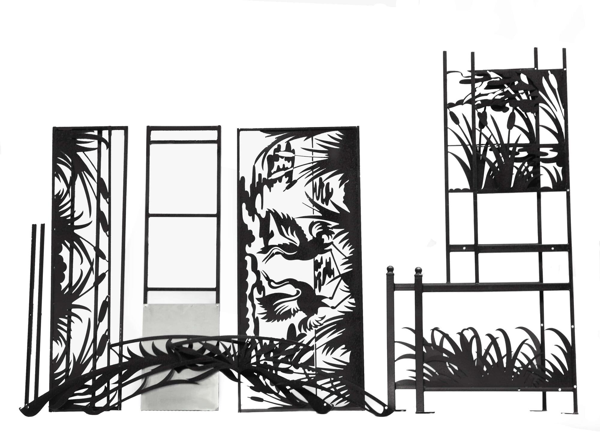 Все художественные элементы выполнены из листовой стали толщиной 2 мм, что обеспечивает необходимую прочность и легкость конструкции.