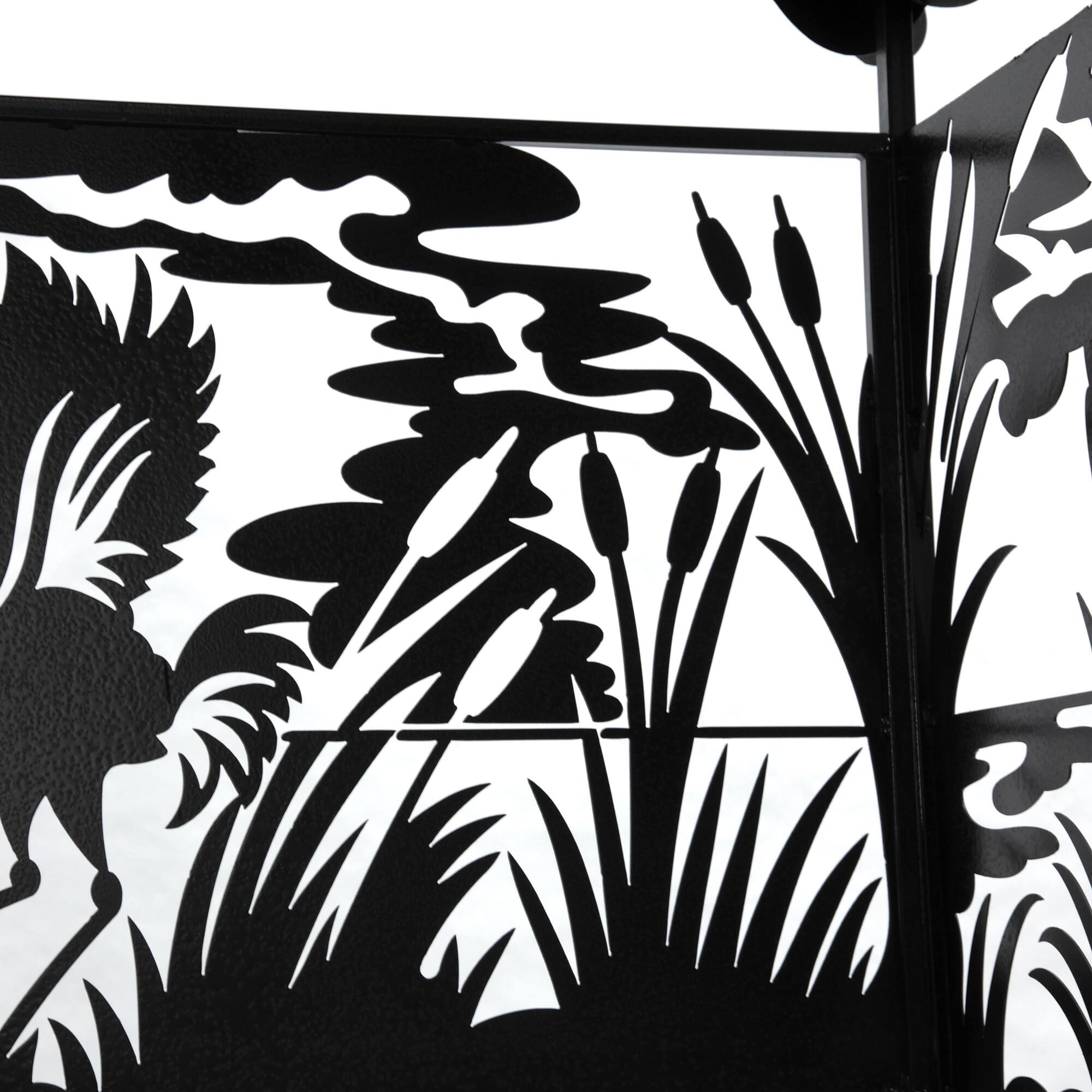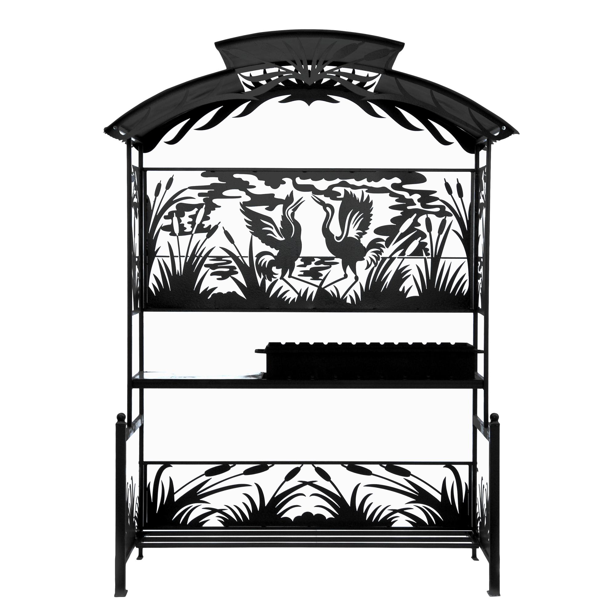 Мангал Журавли М90 - это металлический разборный мангал с крышей, с резными рисунками в виде журавлей в камышах. Один из самых красивых и популярных мангалов, предлагаемых нашим производством.