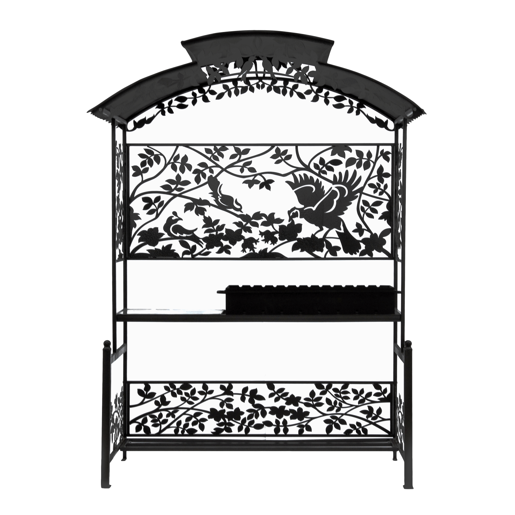 Мангал Птицы М90 - это металлический разборный мангал с крышей, с резными рисунками в виде птиц в шиповнике. Один из самых красивых и популярных мангалов, предлагаемых нашим производством.