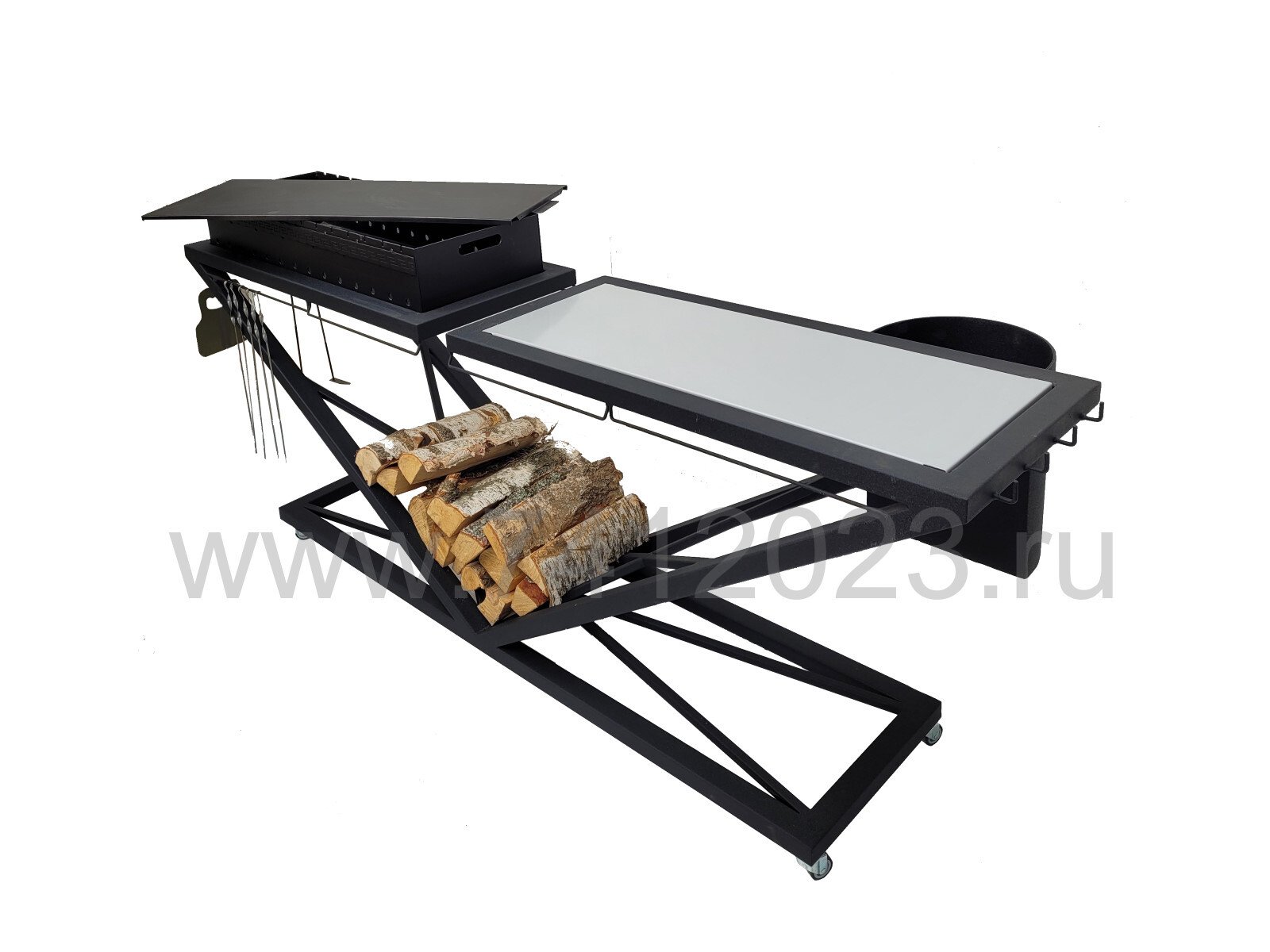 Мангал №41/3-T7 серия "ЛОФТ" с жаровней (Полка керамогранит)