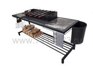 Мангал №42\3+2П-Т7 серия "ЛОФТ" с жаровней (Полка керамогранит) + Урна