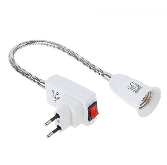 Переходник вилка-патрон E27 гибкий 300мм c выключателем Белый