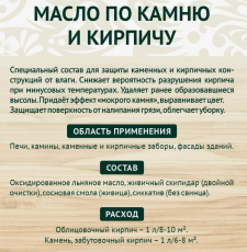 Масло для кирпича и камня является водоотталкивающей пропиткой для каменных фасадов зданий, заборов, фундаментов и т. д. Придает кирпичной и каменной кладке эффект "мокрый камень".