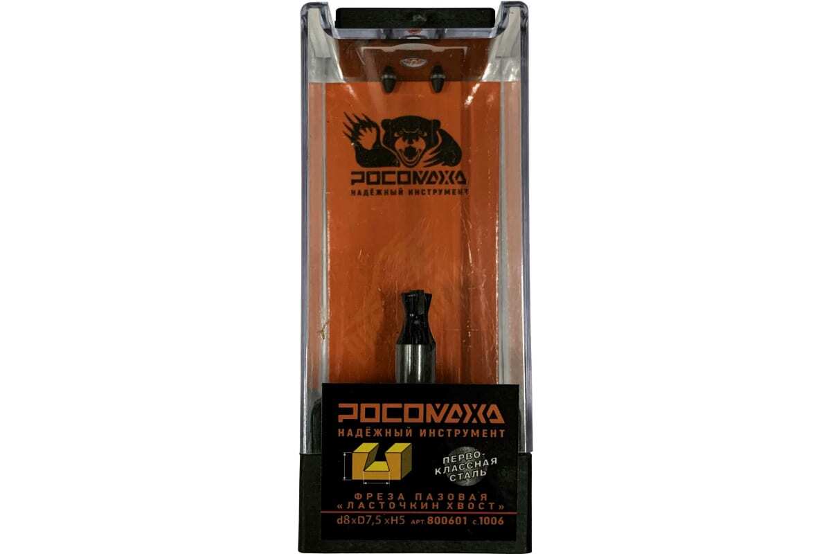 Фреза пазовая Ласточкин хвост серия 1006 (7.5х5 мм; хвостовик 8 мм) Росомаха 800601 используется для выполнения сложных декоративных рисунков, а также для получения галтельной выемки по пласти, ребру и кромке изделия.