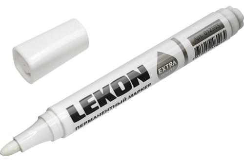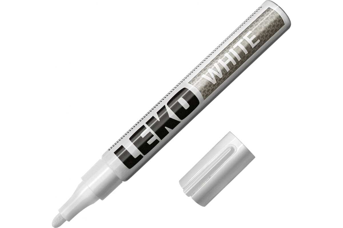 Белый строительный маркер-краска LEKON 011904 служит для разметки отделочных материалов, маркировки товаров в торговом зале, маскировки дефектов мебели и бытовой техники. Красящий состав быстро высыхает на поверхности и отличается устойчивостью к выцветанию.