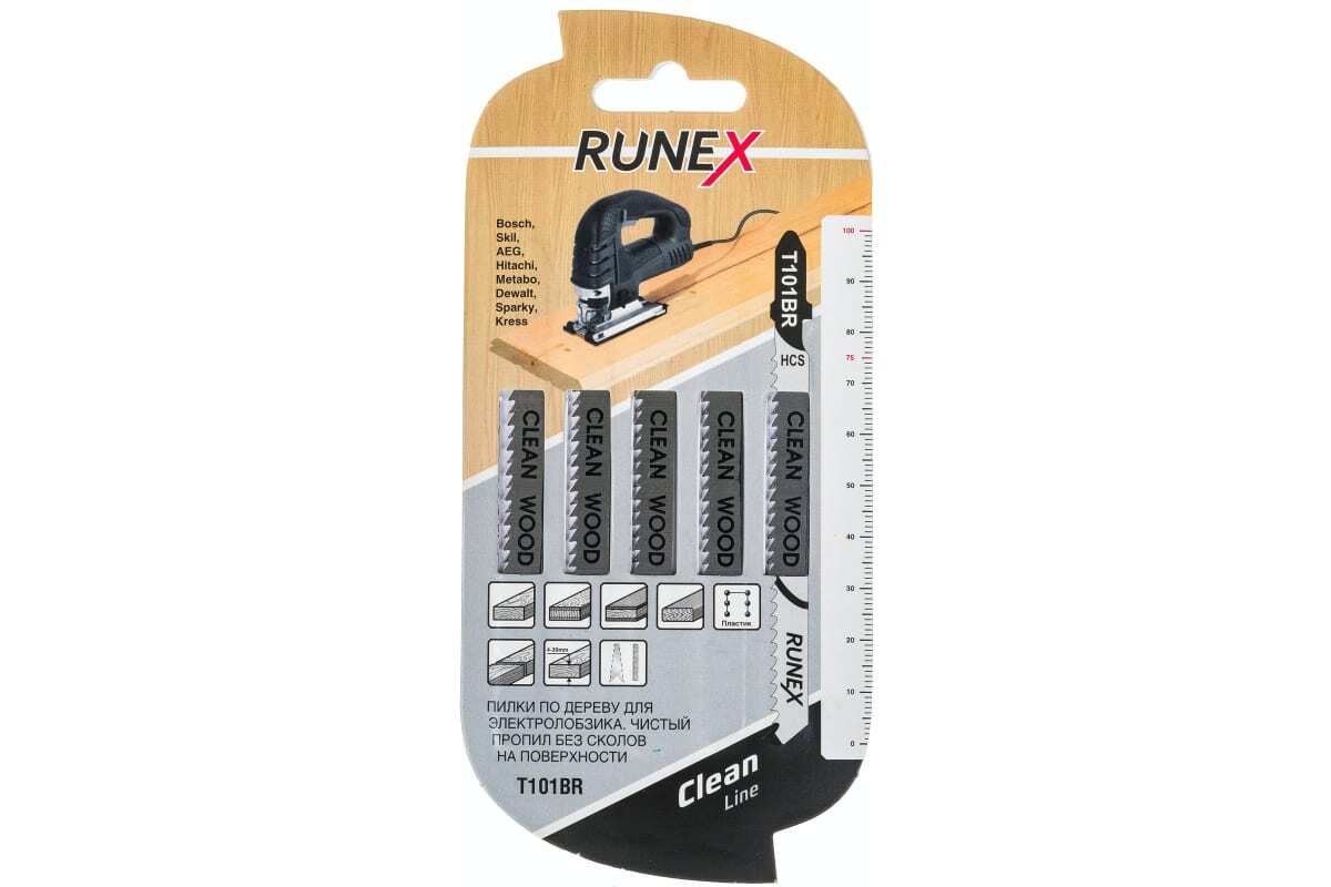 Пилки Runex T101BR HCS 100*75мм 5шт (древ,фанера,ламинат,пласт 4-30мм)