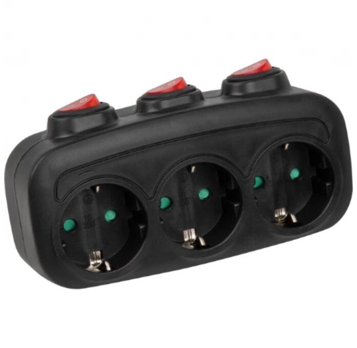 Разветвитель сетевой с/з 3гнезда с 3-мя выключателями 16А 3.5кВт Черный ТМ Uniel S-GES3-16OB