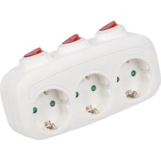 Разветвитель сетевой с/з 3гнезда с 3-мя выключателями 16А 3.5кВт Белый ТМ Uniel S-GES3-16OB